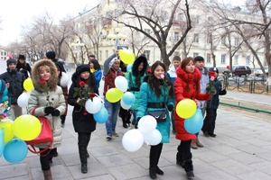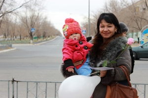 В прошедшие выходные дни участники молодёжных движений города продолжили осенний марафон добрых дел. В канун Всероссийского Дня матери волонтёры при поддержке Управления культуры, молодежной политики, туризма и спорта вышли на улицы с цветами, чтобы провести акцию "Цветы Байконура - мамам". Цель акции - напомнить горожанам о ценностях материнства и детства, а главное, поздравить с этим праздником самих мам. В этом году в акции приняло участие 30 волонтёров, которые лично поблагодарили женщин Байконура просто за то, что они сохранили своим детям жизнь и стали мамами. Школьники и студенты «Молодёжной команды города», «Второго дыхания», «Молодость Байконура» и «Мир для тебя» стартовали на Арбате и прошли по центральным улицам города с цветами в руках. Ответственный за работу Центра поддержки молодежных инициатив Елена Евдокимова признается:"Несмотря на то, что акцию мы проводим только во второй раз, уверены, что она станет традиционной в нашем городе. И через пару десятков лет уже новое поколение волонтёров - наши дети - будут дарить цветы мамам города. Ведь не стоит забывать, что выдающимися физиками и химиками станут не все, а родителями предстоит быть каждому". Параллельно с Байконуром акция прошла в Калининграде, Москве, Красноярске и других городах России, где волонтёры также выразили свое уважение матерям. Что касается нашего города, реакция у женщин всегда одна и та же: Да и сами ребята – будущие родители – признаются, что после акции по-новому смотрят на свои взаимоотношения с родными. Без внимания не остались и маленькие виновники акции. Для них волонтеры приготовили воздушные шары и развлечения по возрасту. "Спасибо, что вы - МАМА", - скандировали волонтёры, погружая прохожих в особую атмосферу праздника - 30 голосов в едином хоре. А общие слова "песни" просты и понятны каждому - о маме, каждой маме на свете.