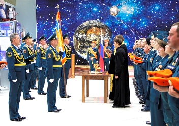 Утром, 26 ноября, в центральном зале музея космонавтики, на площадке № 2 космодрома, состоялась церемония вручения знамени Специальному управлению ФПС № 70 МЧС России. Для вручения боевого знамени прибыла комиссия во главе с директором департамента пожарно-спасательных сил, специальной пожарной охраны и сил гражданской обороны генерал-майором внутренней службы Максимом Владимировым. В торжественном мероприятии приняли участие представители предприятий Российского и Казахстанского космических агентств, администрации города, руководители правоохранительных и силовых структур, духовенства и весь личный состав Специального управления, свободный от несения дежурства. Перед парадным строем была зачитана Грамота Президента Российской Федерации, которая является своего рода сертификатом для знамени.