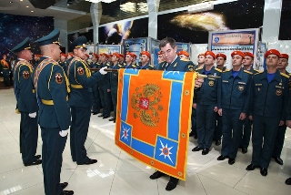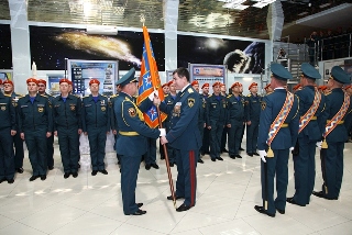 Начальник Специального управления ФПС № 70 МЧС России, Андрей Заровский получив знамя из рук директора департамента, поблагодарил руководство Министерства за высокую оценку работы вверенного ему подразделения. …Нам выпала великая честь получить боевое знамя Управления здесь, на прославленной, Байконурской земле. Знамя, как особая реликвия, олицетворяет традиции ведомства и героические традиции нашей страны, напоминая о священном для любого гражданина долге – служить Отечеству – сказал Андрей Заровский.