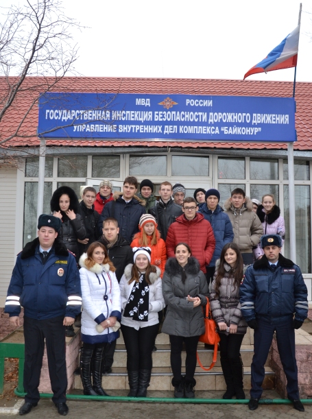 10 декабря 2013 года в Отделе ГИБДД УМВД России на комплексе «Байконур» для старшеклассников школ города, состоялся день открытых дверей с целью агитации молодежи для поступления в Федеральные образовательные учреждения высшего профессионального образования МВД России в 2014 году.