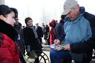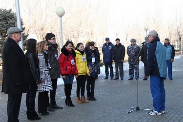 На церемонию поднятия флагов были приглашены представители Молодёжной команды города – самые активные участники проекта «Миссия X. Будь как космонавт». В обращение к основному и дублирующему экипажам «Союз ТМА-12М» ребята рассказали о двухмесячной работе в рамках Международного проекта, в котором принимают участие 17 стран с целью развития интереса к космонавтике и укрепления здоровья подрастающего поколения. Символично, что в состав экипажа впервые входит наш земляк – байконурец Олег Артемьев. Волонтёры подчеркнули, что особенно гордятся этим фактом и надеются, что через пару десятков лет кто-то из сегодняшних школьников составит достойную смену покорителям космоса.