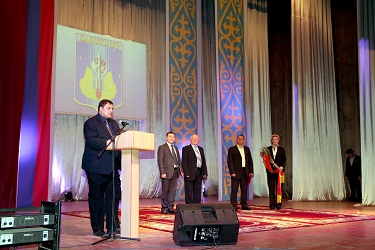 Торжественная церемония началась с исполнения духовым оркестром гимнов России и Казахстана. Далее был показан видеофильм, в котором отмечены основные вехи жизнедеятельности Александра Мезенцева.