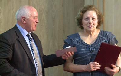 На еженедельном совещании руководителей городских предприятий, учреждений и организаций, состоявшемся 21 апреля, и.о. Главы администрации города Байконур Анатолий Петренко вручил благодарственный адрес главному специалисту отдела торговли, потребительского рынка, защиты прав потребителей и развития малого и среднего предпринимательства Таисии Лапшиной в связи с ее отъездом в Россию на постоянное место жительства. Анатолий Петренко, поблагодарив Таисию Дмитриевну за совместную многолетнюю работу и большой личный вклад в развитие торговли в нашем городе, пожелал ей всего самого наилучшего в жизни. В ответном слове Таисия Лапшина выразила признательность руководству администрации и коллегам за совместную деятельность.