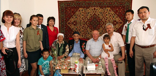 Сегодня исполняющий обязанности Главы администрации города Байконур Анатолий Петренко и представители различных городских организаций навестили на дому ветерана Великой Отечественной войны Сару Фахрутдинову, которая в годы войны была фронтовой медсестрой. Затем в поселке Акай делегация побывала в гостях у Калмурзы Жарманова - участника битвы под Сталинградом, а в поселке Тюра-Там – у Жуматая Мустафаева, который является участником Японской войны.