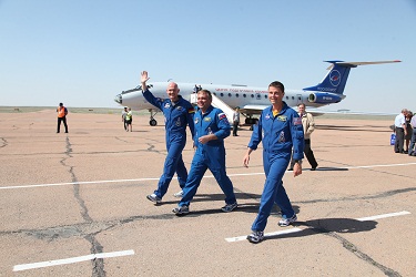 На космодроме Байконур продолжается подготовка к запуску транспортного пилотируемого корабля «Союз ТМА-13М», старт которого намечен на 28 мая. Вчера экипажи 40/41 экспедиций на МКС прибыли на Байконур для прохождения заключительных предстартовых тренировок. В аэропорту «Крайний» членов основного экипажа - российского космонавта Максима Сураева, астронавта НАСА Рида Вайзмана, астронавта ЕКА Александра Герста и дублирующий экипаж, в составе которого российский космонавт Антон Шкаплеров, астронавт ЕКА Саманта Кристофоретти и астронавт НАСА Терри Вёртс, приветствовали представители администрации города Байконур, Управления Роскосмоса на космодроме Байконур, Космического центра «Южный», УМВД России на комплексе «Байконур», РКК «Энергия», а так же учащиеся Международной космической школы.