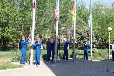 17 мая в Испытательном учебно-тренировочном комплексе НИИ ЦПК им. Ю.А.Гагарина была проведена традиционная церемония поднятия флагов государств-участников программы полёта экипажей 40/41-й длительной экспедиции на Международную космическую станцию.