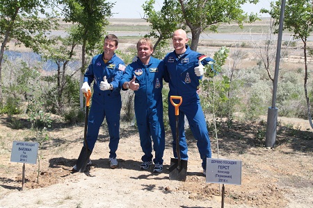 Сегодня же на Аллее космонавтов экипажи по давно устоявшейся традиции посадили деревья. Впервые дерево на Аллее космонавтов посадил первый космонавт Земли - Ю.А.Гагарин. Эта традиция зародилась с начала пилотируемых стартов и вот уже шестое десятилетие соблюдается всеми космонавтами.