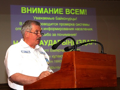 С подробным анализом состояния дел по организации оповещения в городских структурах выступил начальник отдела по ЧС Александр Красюков. Он отметил, что тренировка прошла организованно, в соответствии с планом; травматизма, нарушений правил безопасности не было. Органы управления, силы и средства Байконурской территориальной подсистемы РСЧС выполнили поставленные задачи, должностные лица получили ценный опыт действий в условиях угрозы возникновения ЧС.