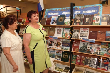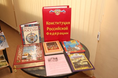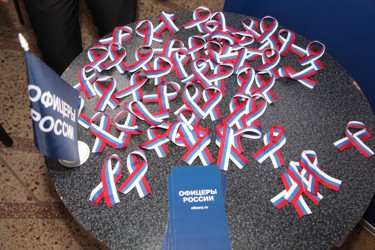 В фойе ГДК была устроена книжная тематическая выставка «Широка страна моя родная», подготовленная сотрудниками центральной городской библиотеки. Представители общественной организации «Офицеры России» раздавали участникам собрания ленточки цветов триколора.