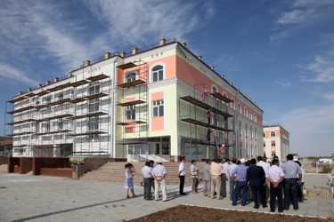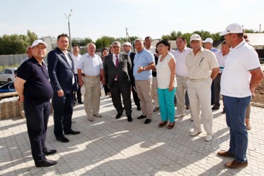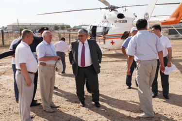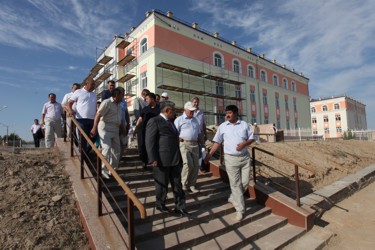 27 июля, в ходе рабочей поездки по ряду районов Кызылординской области, в Байконуре с краткосрочным визитом побывали аким Кызылординской области Крымбек Кушербаев, его заместитель - специальный представитель Президента РК на комплексе «Байконур» Серик Кожаниязов и другие официальные лица. Вертолет с гостями приземлился рядом с мечетью у КПП №1, где акима области и сопровождавших его лиц встречали исполняющий обязанности Главы администрации города Байконур Анатолий Петренко, руководители казахстанских городских и районных структур. Сразу после приземления аким области и сопровождавшие их лица отправились к зданию, которое строилось под родильный дом. В настоящее время там планируется организовать поликлинику, которая будет находиться в ведении Кызылординской области. Крымбек Кушербаев осмотрел здание, в котором сейчас проводится реконструкция, и выслушал доклады ответственных лиц о ходе запланированных работ. Судя по докладам, завершить реконструкцию здания планируется в октябре.