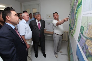 В холле будущей поликлиники были размещены планшеты, на которых представлен перспективный план развития Байконура и близлежащих поселков. Докладывая о проекте, начальник Управления архитектуры и градостроительства Кызылординской области Сейлхан Тойбазаров отметил, что генплан разработан с учетом программы подготовки Казахстана к международной выставке ЭКСПО-2017. В нем учтено, что в перспективе Байконур станет заметным туристическим и культурным центром, привлекательным для инвесторов. Специальный представитель Президента РК на комплексе «Байконур» Серик Кожаниязов обозначил круг вопросов по строительству в Байконуре доступного жилья. Крымбек Кушербаев предложил Анатолию Петренко вынести ряд организационных вопросов по перспективному строительству в городе и прилегающих к нему территориях на заседание российско-казахстанской межправительственной комиссии по комплексу «Байконур».