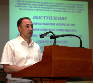 19 сентября в городской администрации было проведено инструкторско-методическое занятие с уполномоченными представителями предприятий, учреждений и организаций города Байконур по теме: «Порядок подготовки и проведения общегородской тренировки по оповещению и информированию населения с использованием технических средств, выполнению организационно-технических мероприятий по передаче информации о порядке действий по сигналу «Внимание всем!».
