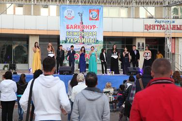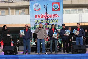 20 сентября на Центральной площади им.Ленина прошел общегородской благотворительный концерт «Байконур - беженцам Украины», подготовленный творческими коллективами Городского Дворца культуры. Акцию под девизом «Спешите делать добро!» организовали региональные отделения Общероссийской общественной организации «Офицеры России» и Всероссийской общественной организации «Боевое братство» города Байконур.