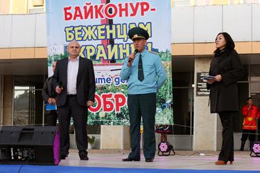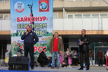 В ходе мероприятия к байконурцам обратились руководители УМВД России на комплексе «Байконур», ФГКУ Специальное управление ФПС №70 МЧС России, подразделений администрации, профсоюза ЦЭНКИ, представители общественных организаций «Боевое братство» и «Офицеры России». Они призвали жителей города помочь беженцам, которые в результате военных действий на юго-востоке Украины оказались в трудных условиях — остались без жилья.
