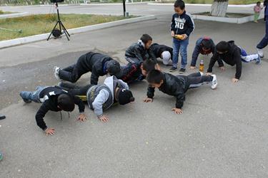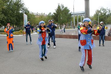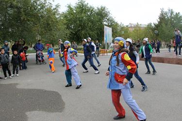 Финальной точкой праздничного дня стала музыкально-конкурсная программа «А ну-ка мальчики, а ну-ка девочки». Зажигательные ритмы, несложные движения волонтёров и активное участие юных байконурцев создали поистине тёплую атмосферу. В завершение праздника под громкие аплодисменты болельщиков все участники конкурса были награждены призами.