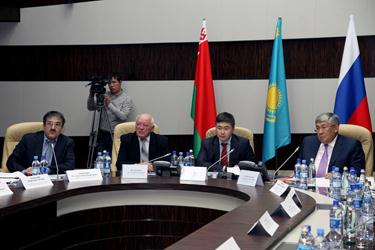 С докладом об основных положениях Договора о Евразийском Экономическом Союзе выступил директор Департамента развития предпринимательской деятельности ЕЭК Рустам Акбердин. Он подробно рассказал о структуре Договора о Евразийском экономическом союзе, подписанного Президентами Республики Беларусь, Республики Казахстан и Российской Федерации, который вступит в силу 1 января 2015 года.