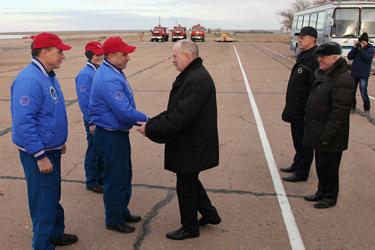 На космодроме Байконур продолжается подготовка к запуску транспортного пилотируемого корабля «Союз ТМА-15М», старт которого намечен на 24 ноября. Вчера основной экипаж 42/43 экспедиций на МКС прибыли на Байконур для прохождения заключительных предстартовых тренировок.