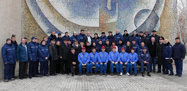 В торжественной церемонии приняли участие основной и дублирующий экипажи транспортного пилотируемого корабля «Союз ТМА-15М», оперативная группа ЦПК имени Ю.А. Гагарина, представители руководства комплекса «Байконур» и казахстанских структур.