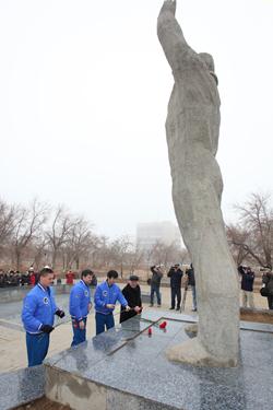 Дублеры возложили цветы к памятнику Юрию Гагарину и сфотографировались у монумента первому космонавту Земли.