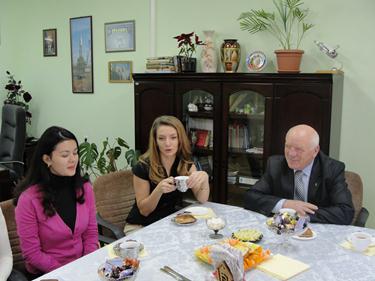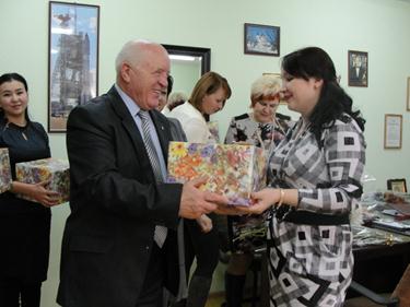 Анатолий Петренко и начальник Управления социальной защиты населения Елена Белоконь поздравили женщин с Днем матери и вручили им цветы и подарки. В теплой обстановке за чашкой чая они поговорили о детях и материнских заботах.