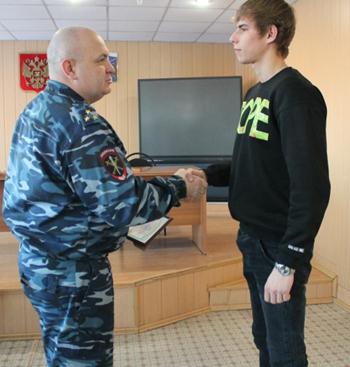 По сообщению пресс-службы УМВД России на комплексе «Байконур», 9 декабря в УМВД состоялось чествование жителей города Байконура Руслана Ергараева и Романа Майстренко, задержавших ночью 15 ноября группу молодых людей, пытавшихся похитить колпаки с колес автомобиля, принадлежащего одному из горожан. Начальник УМВД А.Желудков поблагодарил ребят за активную помощь органам внутренних дел и вручил им почетные грамоты. В ответном слове Р.Ергараев и Р.Майстренко отметили, что поддерживать правопорядок в городе – гражданский долг каждого жителя.