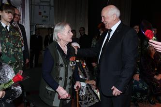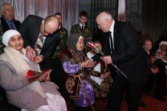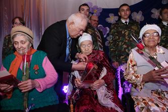 В начале мероприятия состоялось торжественное вручение юбилейных медалей «70 лет Победы в Великой Отечественной войне 1941-1945 гг.» ветеранам ВОВ и труженицам тыла. Указом Президента Российской Федерации, отдавая дань глубокого уважения великому подвигу, героизму и самоотверженности ветеранов войны, 1 фронтовик и 18 тружениц тыла были награждены юбилейными медалями. Исполняющий обязанности Главы администрации города Байконур Анатолий Петренко вручил женщинам-ветеранам награды и поздравил всех собравшихся с наступающим праздником.