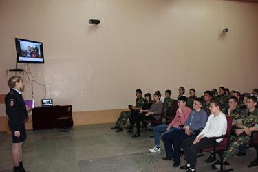 В мероприятии приняли участие психолог Центра занятости населения города Байконур И. Максименко, заместитель начальника ОРЛС УМВД России на комплексе «Байконур» майор полиции Е. Тилинин, врио специалиста по работе с личным составом ГК ОВО на комплексе «Байконур» сержант полиции Е. Рысинская. Они рассказали школьникам о службе в органах внутренних дел, возможности самореализации и карьерного роста, социальных гарантиях. В ходе мероприятия были продемонстрированы видеосюжеты о деятельности полицейских, подготовленные сотрудником ОВО на комплексе «Байконур» младшим лейтенантом полиции А. Радаевым.