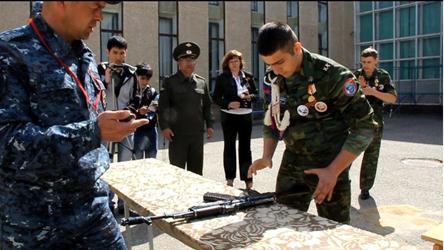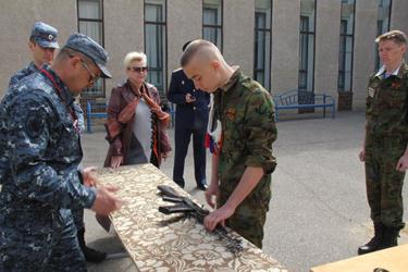 В то время, когда одни команды демонстрировали четкий строевой шаг, другие состязались в разборке – сборке автомата Калашникова. Это один из самых сложных конкурсов игры, в котором успех команды зависит от участия трех юнармейцев – двух мальчиков (один из которых командир) и девочки. Общекомандное время складывалось из результатов каждого участника. Самыми ловкими в данном конкурсе стали юнармейцы ГБОУ СОШ №4, заняв первое место в командном зачете, второе место - у ГБОУ СОШ №5, третье призовое место досталось команде ГБОУ СОШ №3.