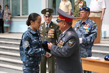 После вручения знамени состоялась церемония посвящения в курсанты новых членов отряда. Слова посвящения произнес студент Алексей Лембик. Представитель Байконурского отделения Всероссийской ветеранской организации «Офицеры России» Шаяхмет Мыханов и заместитель председателя Байконурского регионального отделения Всероссийской общественной организации ветеранов «Боевое Братство» Исмаил Бадыршаев вручили молодому пополнению береты. Слова поздравления и напутствия высказали студентам почетные участники церемонии. Александр Красюков, отметив, что студенческий спасательный отряд впервые получил знамя, пожелал ребятам во всем быть первыми.