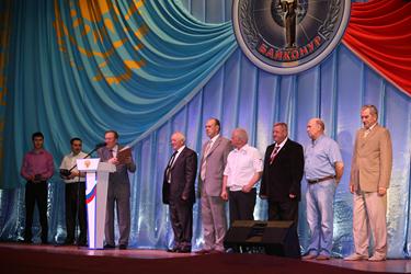 Руководитель администрации города Байконур Анатолий Петренко вручил на сцене ГДК юбилейную медаль «60 лет Байконуру» 20-ти наиболее заслуженным ветеранам Байконура (позже медаль «60 лет Байконуру» была вручена более 200 ветеранам). Среди награжденных - Леонид Баранов, Николай Борисюк, Александр Ковалев, Игорь Куринной, Александр Лопатин, Сергей Романов, Алексей Макарычев, Владимир Меньшиков, Леонид Шумилов, Григорий Сонис, Нина Омысова.
