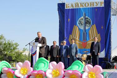 Руководитель Федерального комического агентства Игорь Комаров поздравил байконурцев с юбилеем и зачитал приветственный адрес председателя Правительства Российской Федерации Дмитрия Медведева. Затем с поздравлениями выступили исполняющий обязанности администрации города Байконур Анатолий Петренко и командующий войсками Космического командования войск воздушно-космической обороны генерал-майор Олег Майданович, зачитавший поздравление от имени Министра обороны РФ генерала армии Сергея Шойгу и передавший приветствия от космодрома «Плесецк».