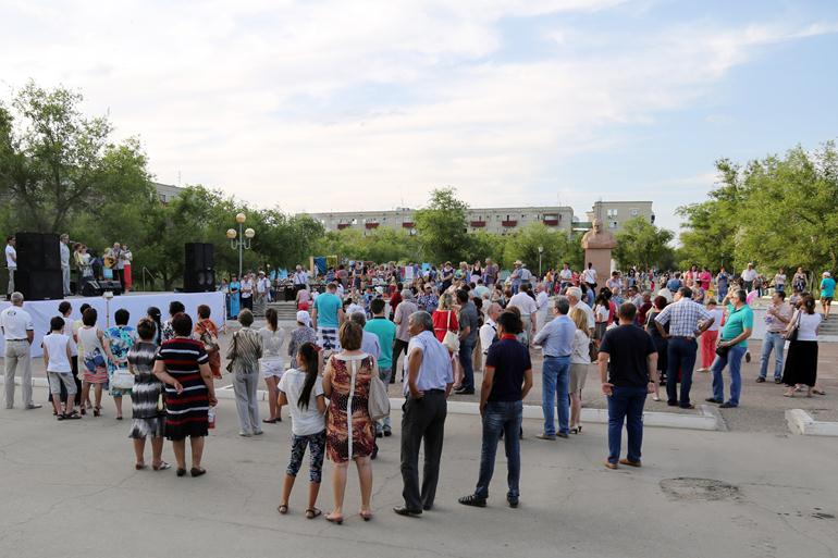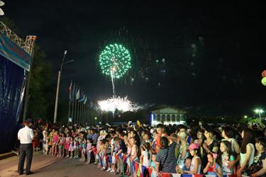 На центральной площади состоялся большой праздничный концерт с участием творческих самодеятельных коллективов Городского Дворца культуры и конкурс красоты «Мисс Байконур-2015».