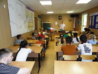 По сообщению пресс-службы УМВД России на комплексе «Байконур», 16 июня сотрудники полиции организовали для детей, посещающих летний лагерь «Надежда», действующий в Комплексном центре социального обслуживания населения, экскурсию в отдел ГИБДД и Центр кинологической службы Управления.