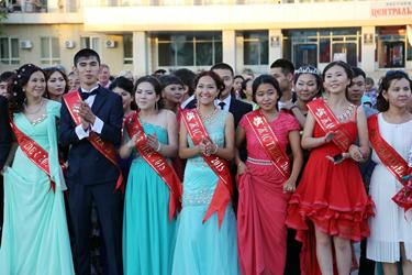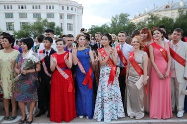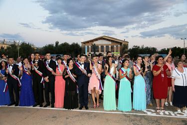 20 июня в 9 часов вечера на центральной площади собрались около 450 выпускников общеобразовательных школ города, их родители и друзья. Колонны выпускников возглавляли педагоги, вложившие много сил и знаний в каждого своего ученика. Со словами поздравлений и напутствий во взрослую жизнь к ребятам обратились и.о. Главы администрации города Байконур Анатолий Петренко, начальник Управления образованием Марина Овчинникова, родители. Они пожелали выпускникам всего самого наилучшего в жизни, не забывать свою малую родину и всегда достойно нести почетное звание - байконурец.
