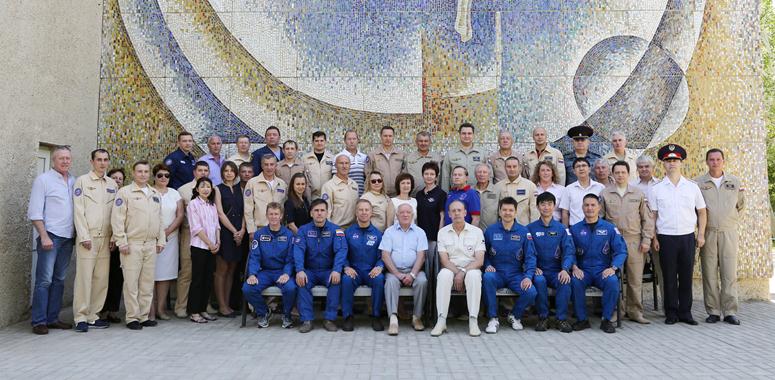 Затем состоялось традиционное фотографирование космонавтов и астронавтов с участниками оперативной группы и гостями.