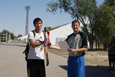 Главный судья Аймбетов Бакытжан вручил всем участникам турнира грамоты, а победителю кубок.