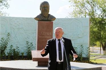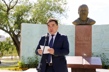 В сквере имени Абая Кунанбаева состоялся митинг, собравшихся у памятника великому сыну казахского народа приветствовали Глава администрации г.Байконур Анатолий Петренко и Специальный представитель Президента РК на комплексе «Байконур» Серик Кожаниязов.