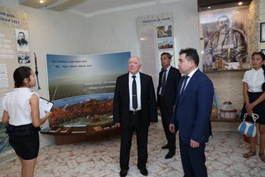 После торжественной части гости посетили музей в средней школе №5, где ознакомились с экспозициями, посвященными Абаю Кунанбаеву, 60-летию Байконура и Почетному гражданину города Байконур, космонавту-испытателю, выпускнику школы Олегу Артемьеву.