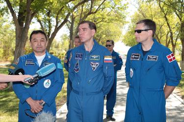 У журналистов была возможность не только наблюдать за подготовкой, но и лично пообщаться с участниками полета. Для членов экипажей этот день наполнен будничной кропотливой работой: теория, практика, физподготовка. В сегодняшней тренировке космонавты и астронавты на компьютерном тренажёре отрабатывали причаливание транспортного пилотируемого корабля «Союз ТМА» к МКС в ручном режиме, изучали бортовую документацию и проходили подготовку к воздействию факторов космического полета.