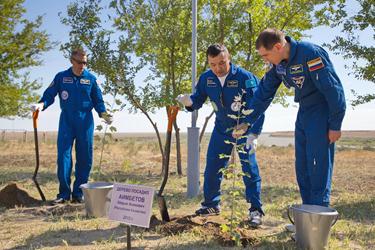 Во второй половине дня члены основного и дублирующего экипажа совершили прогулку по Аллее космонавтов, где Айдын АИМБЕТОВ и Андреас МОГЕНСЕН по традиции посадили деревья перед первым полетом.