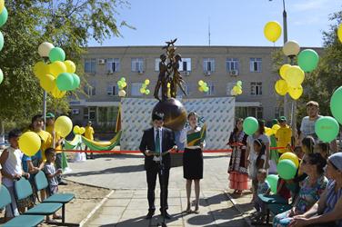 Символичную красную ленту на открытии скульптурной композиции перерезали Глава городской администрации Анатолий Петренко и руководитель Управления по обеспечению деятельности специального представителя Президента РК на комплексе «Байконур» Ерлан Назаров. Анатолий Петренко, поздравив горожан с открытием новой достопримечательности, выразил благодарность руководству Народного банка за подарок байконурцам и активное участие в жизни города.