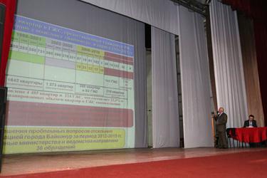 В начале своего выступления Анатолий Петренко подробно рассказал о выполнении государственных жилищных обязательств по обеспечению жильем на территории РФ граждан, проживающих и работающих на комплексе «Байконур», о ходе работы по возобновлению финансирования отселения и расширению категории граждан-получателей жилищных сертификатов. Глава города отметил, что на основании Указа Президента РФ от 24 октября 1994 г. N 2005 "Об организации дальнейшего использования космодрома "Байконур" в интересах космической деятельности Российской Федерации" с 1994 по 2002 год было обеспечено квартирами в России 2 543 байконурские семьи.