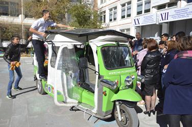 Два дня борцы за спасение экологии рассказывали студентам и школьникам о целях своего путешествия, показывали презентации, видеоролики и даже катали на своем необычном средстве передвижения. Энергичные и веселые ребята много шутили и рассказывали о своем деле на понятном и доступном для молодежи языке, хотя и делали это поанглийски.