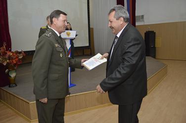 Коснулся в своей речи Николай Придворов и специфики работы военкомата в условиях за пределами РФ, в которых приходится принимать нестандартные схемы и пути решения. «Иногда военкомов других субъектов удивляют условия нашего пребывания, удаленность от России, специфика нашего города, что у нас нет обязательного призыва, удивляет количество обслуживаемых военных пенсионеров (до 2700 человек), специфика доставки призывников-добровольцев через границу на призывной пункт Оренбурга. Интересная у нас ситуация и в отделении социального обеспечения, где стоят на учете и обслуживаются не только военные пенсионеры, но и пенсионеры МВД России, МЧС России, ФСИН, ФСКН – весь дружный ветеранский отряд Байконура!», - отметил военный комиссар города.