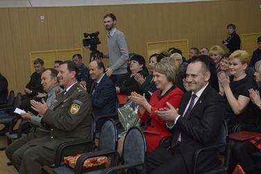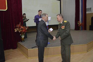 Воспитанники творческих коллективов Городского Дворца культуры подготовили к юбилею яркие концертные номера. В завершение мероприятия сотрудники военного комиссариата дружно исполнили песню «Мы желаем счастья вам».