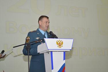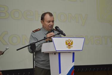 Торжественное собрание открыл военный комиссар города Николай Придворов. В своем докладе он отметил основные вехи становления и развития на Байконуре военного комиссариата РФ и его главные достижения за прошедшие 20 лет. Николай Придворов отметил, что военным комиссариатом города Байконур со дня образования было призвано на службу более 600 призывников, из них для похождения службы на космодроме свыше 280, направлено служить по контракту более 230 человек. Ежегодно сотрудниками военного комиссариата проводится отбор граждан в высшие учебные заведения, суворовские и нахимовские училища, кадетские корпуса. По итогам работы комиссариата поступили в военно-учебные заведения более 400 призывников, их них в Военно-космическую академию более 330.