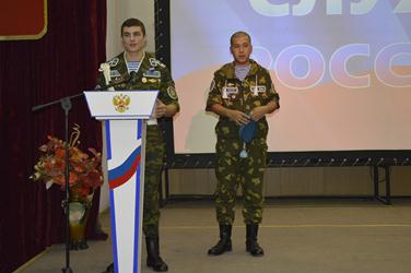 Гостями торжественных проводов в армию стали юноши, уже отслужившие в армии – Максим Елизаров и Мирамбек Елдизеров. Каждый из них рассказал о том, как проходила его служба и об особенностях войск и мест, в которых они побывали. Ребята пожелали призывникам, чтобы они достойно отслужили, вернулись на следующий год в город и поделились своим опытом с будущими новобранцами.