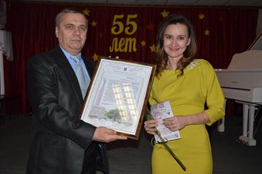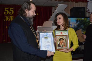 Коллективу школы были вручены подарки. Почетными грамотами Главы администрации были награждены педагоги М.Филиппова и Е.Буйневич. Ряду сотрудников ДМШ №1 были объявлены благодарности от имени главы города, вручены грамоты от представителя Президента Республики Казахстан на комплексе «Байконур», управления образованием, первичной профсоюзной организации комплекса «Байконур». Настоятель храма Святого Георгия Победоносца протоиерей Сергий преподнес в дар именинникам икону Казанской Божьей Матери.