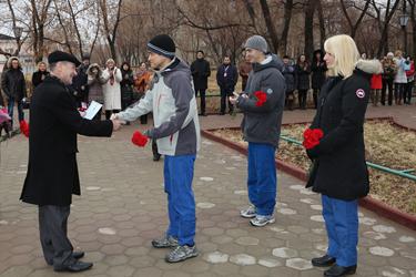 На церемонии присутствовали заместитель Главы администрации города Байконур Николай Адасев, исполняющий обязанности руководителя Управления по обеспечению деятельности Специального представителя Президента Республики Казахстан на комплексе «Байконур» Батыржан Аймаганбетов, начальник Управления Роскосмоса на космодроме Байконур Анатолий Белоконь, первый заместитель директора филиала ФГУП «ЦЭНКИ» – Космический центр «Южный» Евгений Раковский, генеральный конструктор по пилотируемым космическим комплексам ОАО РКК «Энергия» Сергей Романов. Они пожелали экипажу выполнения всех поставленных задач, удачного старта, и благополучного возвращения на Землю. Представители руководства города и космодрома заверили космонавтов и астронавтов, что все городские структуры и предприятия Роскосмоса готовы к обеспечению предстоящего запуска.