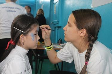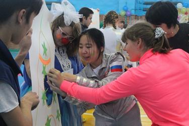 В этом году праздник назывался «Космическое путешествие» и был посвящен юбилейной дате, которую весь мир готовится отметить в 2016 году – это 55-летие полета в космос Ю.А. Гагарина. С помощью стилизованной декорации, тематической музыки и необычных эстафет, организаторам удалось создать «космическую» атмосферу в зале и соответствующее настроение у всех присутствующих. У входа в зал гостей встречала команда волонтеров-художников, которые рисовали на лицах ребят самые замысловатые космические узоры. А веселые клоуны социального проекта «Больничная клоунада» организовали в центре зала увлекательную игру с большим разноцветным парашютом и огромным надувным мячом. Все это, плюс совместная зарядка‑разминка под зажигательную музыку, задали тон всему празднику.